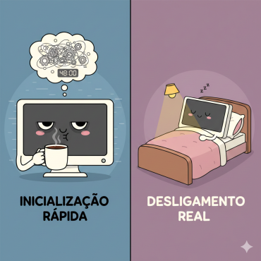 O segredo do botão desligar: Por que seu PC nunca dorme de verdade