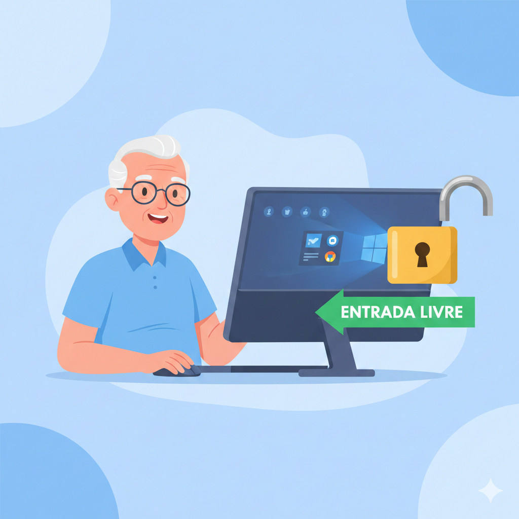 No projeto Micro24Horas, acreditamos que a tecnologia deve servir você, e não o contrário. Por isso, hoje vamos conversar sobre como deixar a “porta” do seu computador aberta para você passar direto, sem burocracia.