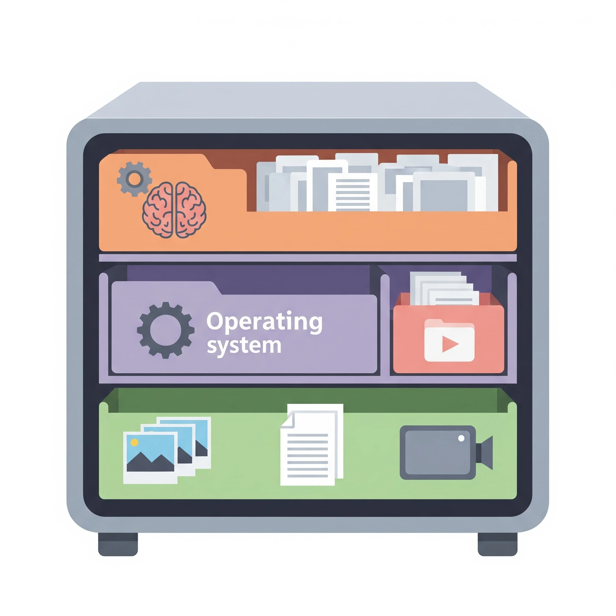 Imagine assim: O Disco Rígido ou SSD é como um gigantesco armário com muitas e muitas gavetas. Todas as suas coisas digitais – suas fotos das férias, as receitas da vovó, os vídeos dos netos, os programas que você usa para acessar a internet ou para digitar uma carta – tudo isso é guardado dentro desse armário.