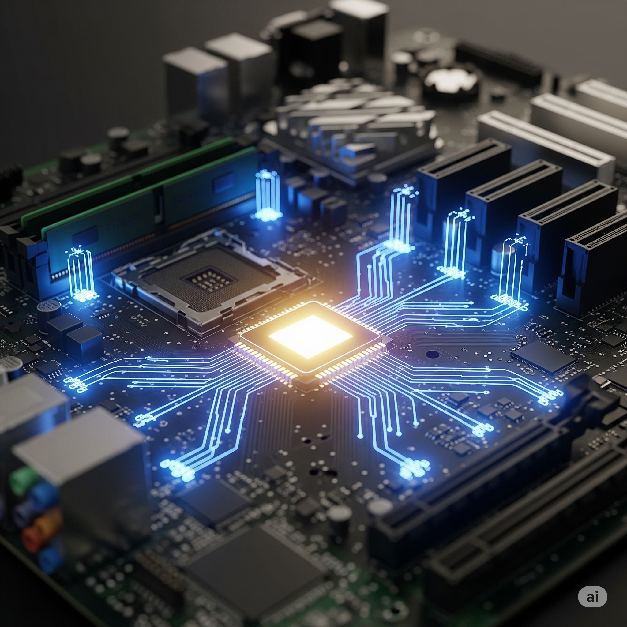 Em termos simples, o chipset é um conjunto de pequenos chips ou circuitos integrados na placa-mãe. Sua função principal é atuar como uma central de controle, gerenciando o fluxo de dados entre o processador (CPU), a memória RAM, as placas de expansão (como a placa de vídeo), os dispositivos de armazenamento (SSDs e HDDs) e os periféricos (teclado, mouse, etc.).