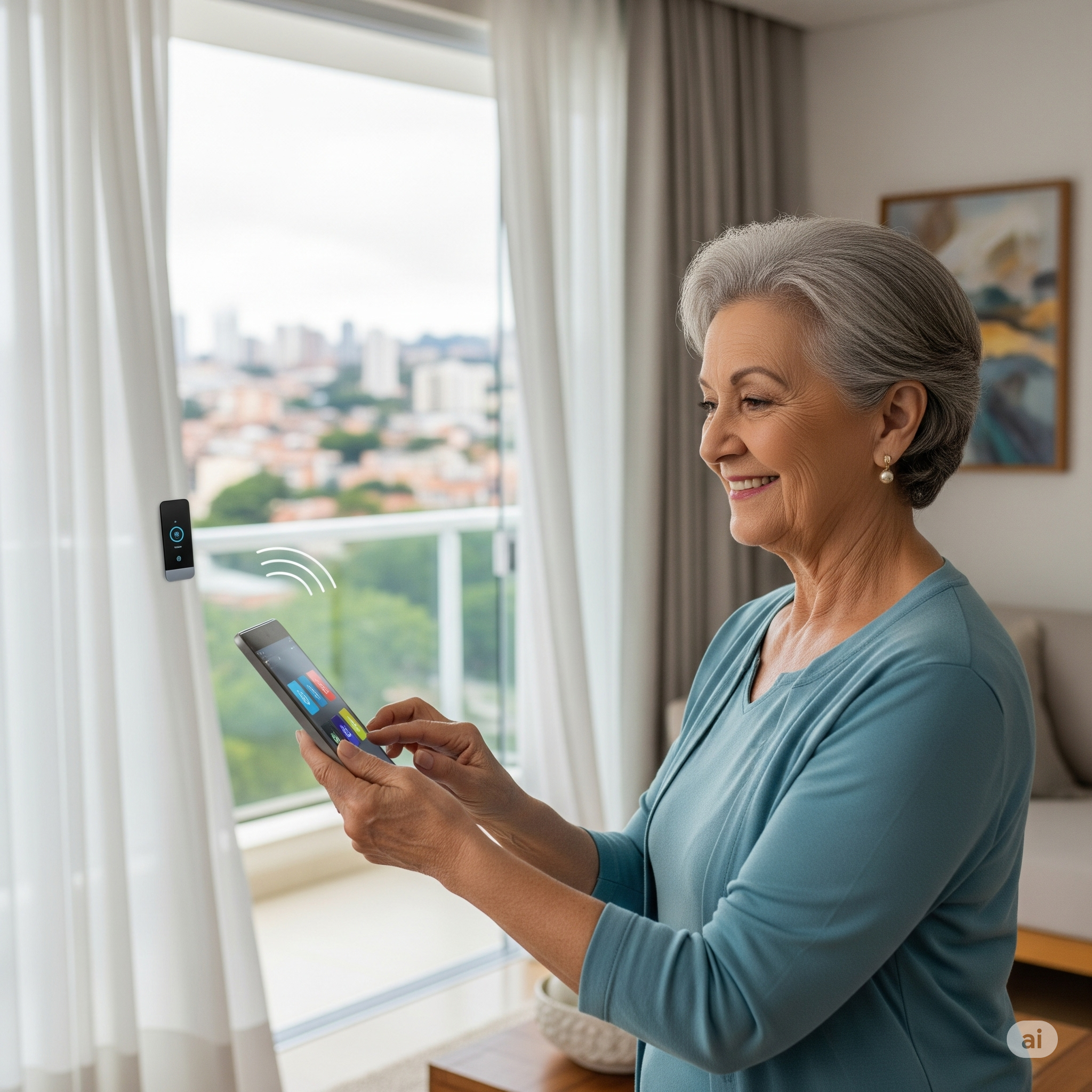 Exemplo prático: Dona Maria, de 70 anos, mora sozinha e às vezes esquece a luz da varanda acesa durante a noite. Com um sistema de automação simples, ela pode programar para que a luz se apague automaticamente às 22h ou controlá-la diretamente do seu smartphone, deitada na cama, sem ter que levantar.